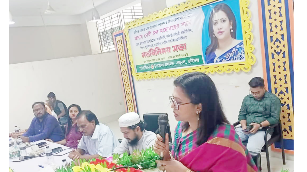 হবিগঞ্জের বাহুবলে বিভিন্ন শ্রেণি- পেশার লোকদের সাথে মতবিনিময় সভা করেছেন হবিগঞ্জের নবাগত জেলা প্রশাসক দেবি চন্দ। বাহুবল উপজেলা পরিষদের সভা কক্ষে আয়োজিত মতবিনিময় সভায় সভাপতিত্ব করেন উপজেলা নির্বাহী অফিসার মহুয়া শারমিন ফাতেমা।
